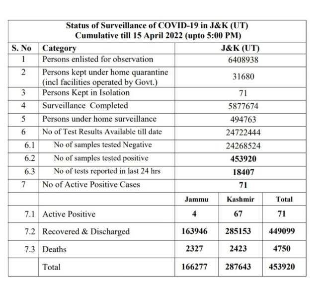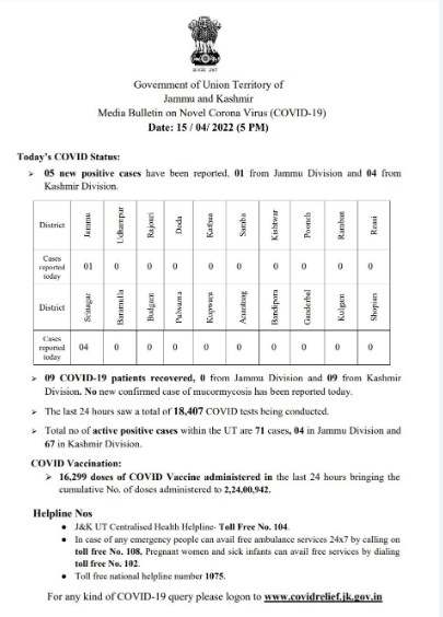 05 new Corona cases reported in Jammu and Kashmir today