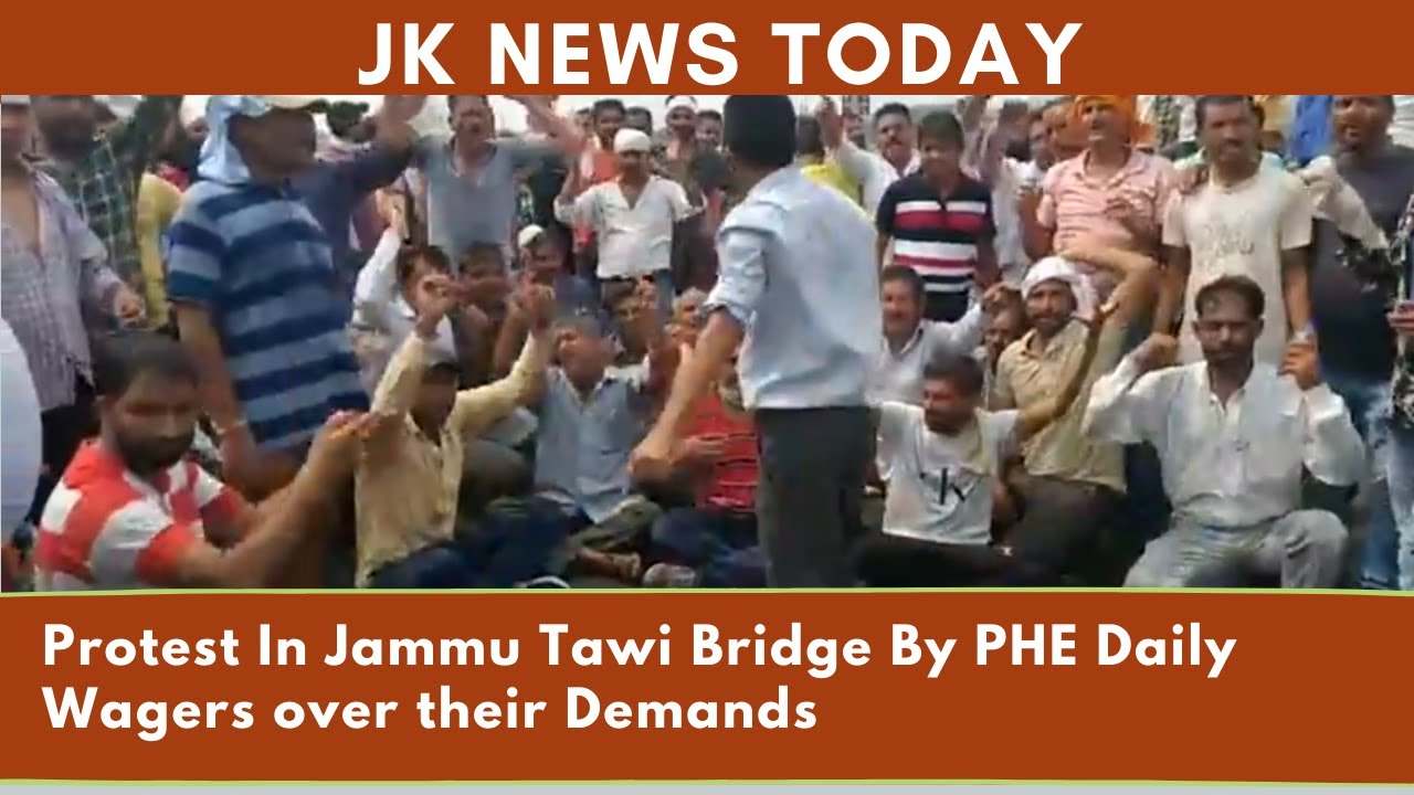 Protest In Jammu Tawi Bridge By PHE Daily Wagers over their Demands Watch the Full Story – JK News Today