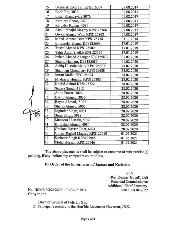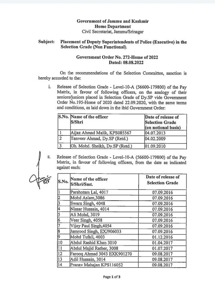 The Jammu and Kashmir government on Monday issued orders granting selection grade to 45 KPS officers .