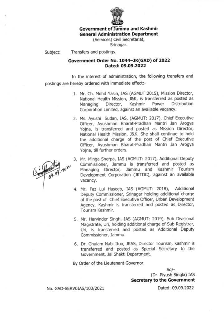 JK News Today Jammu, September 09: Post navigation Sarmad Hafeez flags off Adil Teli’s Leh to Manali cycle Yatra from Srinagar AC approves engagement of project implementing agency for RDSS works in J&K