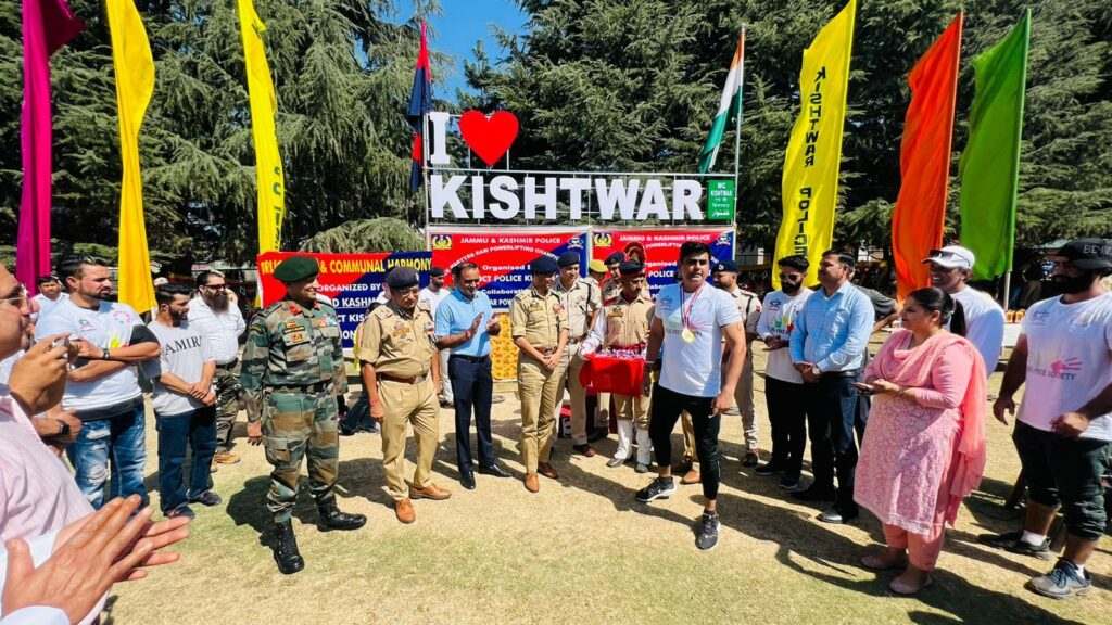 The Power lifting competition organized by Kishtwar Police in collaboration with Kishtwar Power lifting Association in the memory of Police martyrs concluded here today. ADGP Jammu was accompanied Divisional commissioner Jammu Ramesh Kumar-IAS, DIG DKR Range Sunil Gupta-IPS and SSP Kishtwar Shafqat Hussain Bath-JKPS attended the conclusion ceremony.