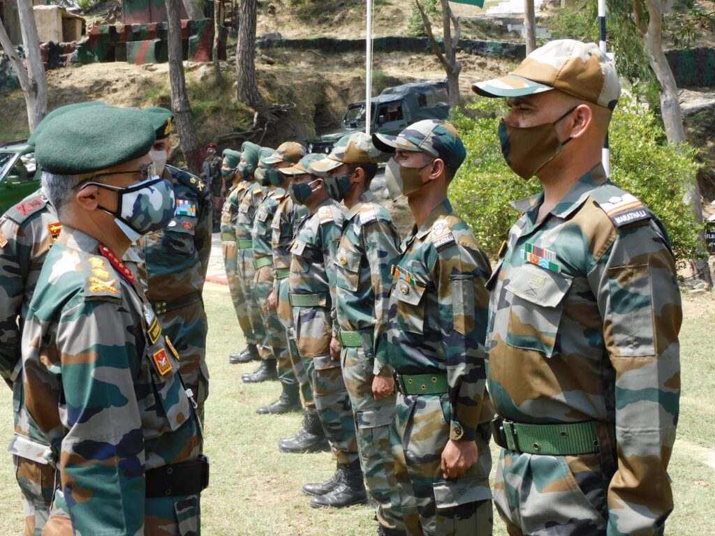 General Naravane interacted with troops deployed in the forward areas and appreciated the sustained efforts of all Ranks of the White Knight Corps towards maintaining the sanctity of the Line of Control as well as wholeheartedly assisting the civil administration, veterans and civil population specially in Border areas to combat the spread of the COVID-19 Pandemic.