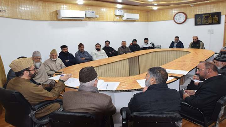 Srinagar, 17 February, 2026: On the arrival of the sacred month of Ramazan, a meeting of the office bearers and members of Anjuman Auqaf Jamia Masjid Srinagar was held at the Auqaf headquarters under the chairmanship of its President Mirwaiz Dr. Molvi Muhammad Umar Farooq, to review arrangements for the holy month at the historic Jama Masjid Srinagar.