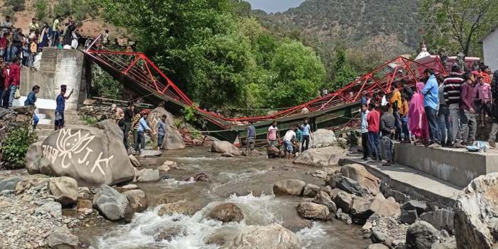 The bridge collapsed during the Baisakhi celebration at Beni Sangam in Bain village in Udhampur’s Chenani Block. Six people were injured during the incident.