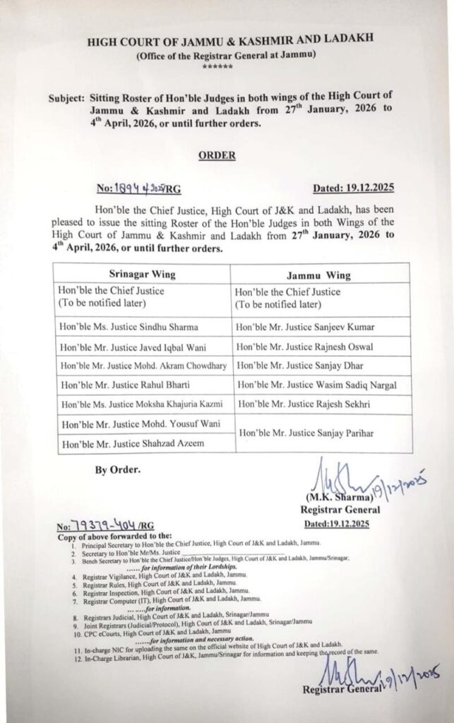 CJI issues calendar of J&K and Ladakh High Court judges sitting in Srinagar and Jammu wings Post navigation Why preserving security and peace dividends in J&K is a strategic necessity Mirwaiz Condemns Public Violation of Woman’s Dignity by Bihar Chief Minister