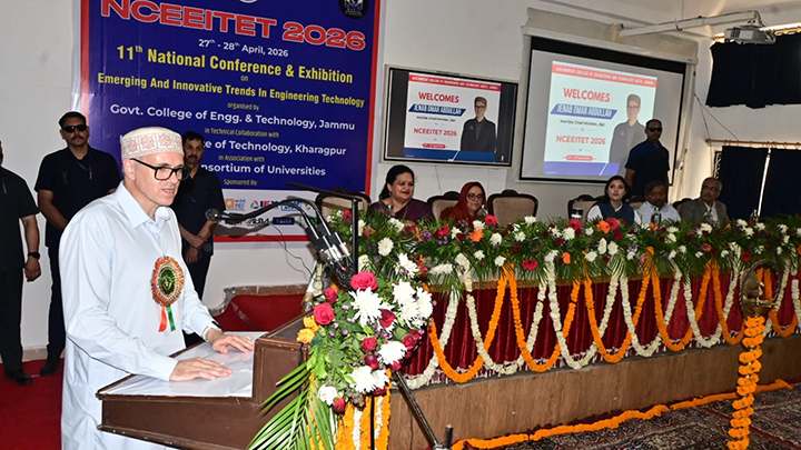 Jammu, April 27: Chief Minister Omar Abdullah today inaugurated the 11th National Conference and Exhibition on Emerging and Innovative Trends in Engineering Technology (NCEITEET) at Government College of Engineering and Technology (GCET), Jammu, underscoring the need to harmonize technological advancement with cultural heritage while fostering innovation-driven growth among youth.