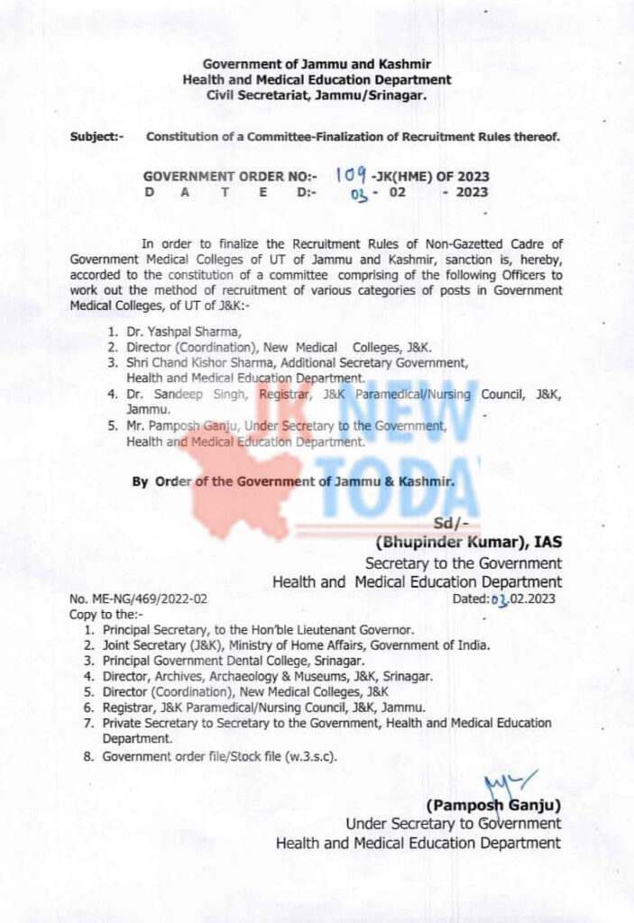 Feb 03, 2023 : Committee formed for recruitment of non gazetted staff in GMCs