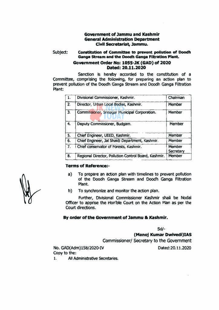 The Jammu and Kashmir government has sanctioned constitution of a Committee, for preparing an action plan to