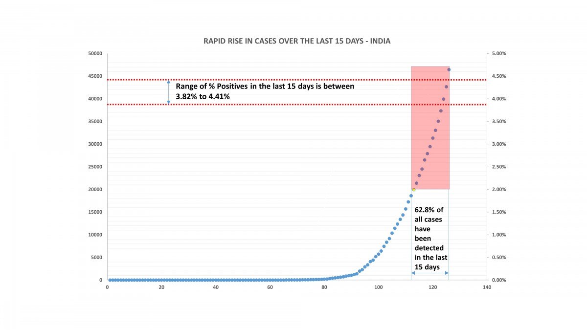 And around 63 per cent of all confirmed cases in the country so far have been detected in the last 15 days.