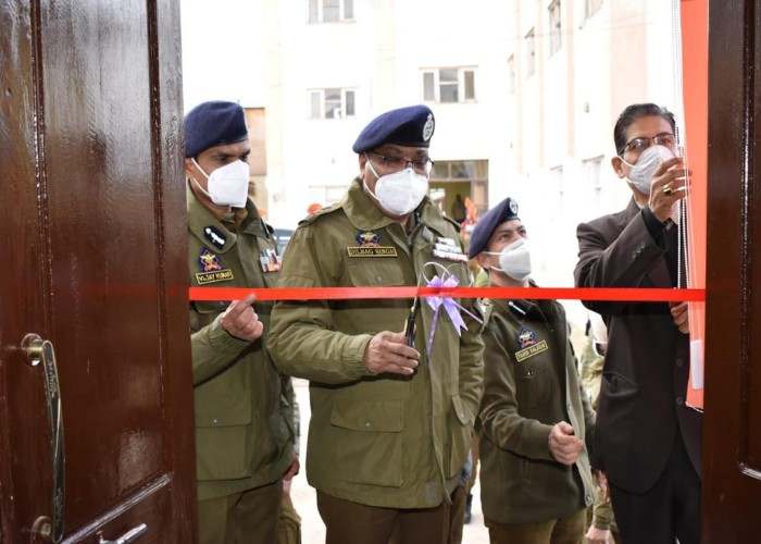 The Director General of Police J&K Dilbag Singh today afternoon visited Budgam where he inaugurated the newly constructed Joint Interrogation Center. He also interacted with the officers and jawans during his tour.
