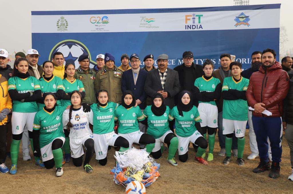 Jammu, 23 December:The 18th Police Martyrs Memorial Football Tournament organized by Jammu and Kashmir Police under its Civic Action Programme and in collaboration with J&K Football Association was declared open at Bakhshi Stadium, Srinagar by Director General of Police J&K Shri Dilbag Singh who was the chief guest at the inaugural function.