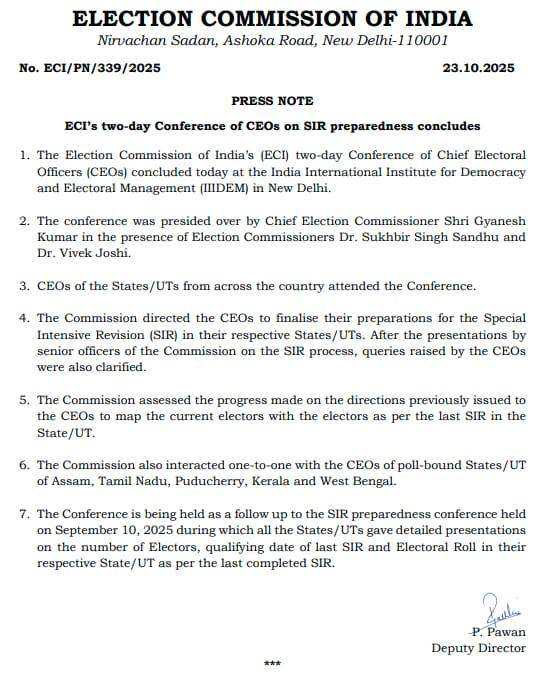 JK News Today ECI Conference on SIR across India concludes Post navigation Legislative Assembly pays glowing tributes to former Governor, Legislators JMC Commissioner conducts extensive tour of Greater Kailash