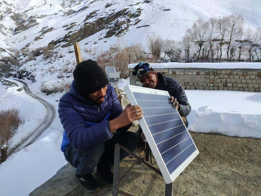 A team of 4 GHE Engineers led by Shakir Hussain worked round the clock in the extreme cold conditions at -25Deg C along with the full support of the villagers to setup 103 Solar Grids in a record time of just 5 days. The entire team worked round the clock even in the freezing environment.