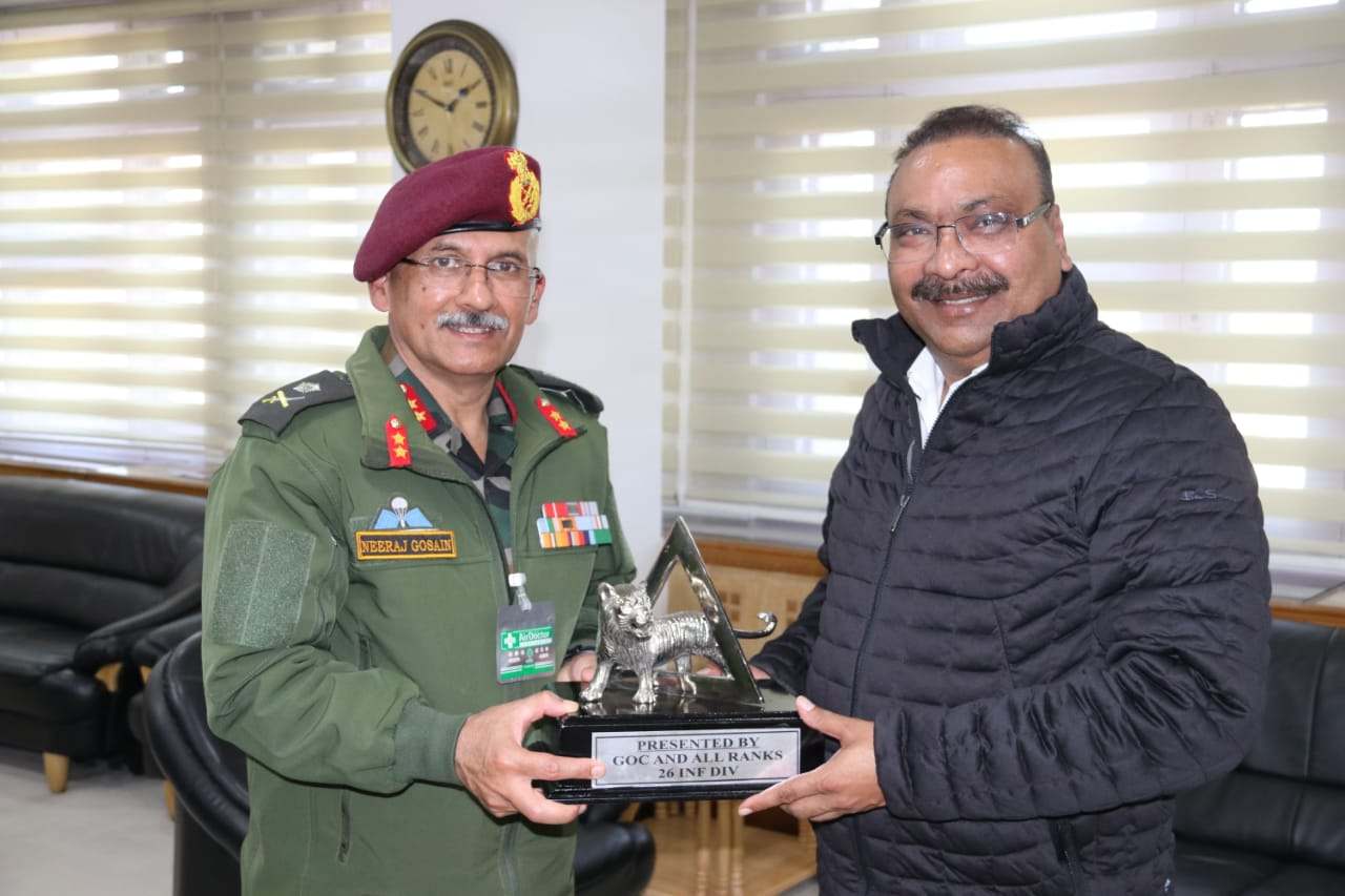 JAMMU, DECEMBER 13: Major General Neeraj Gosain, GOC, 26 Infantry Division today called on Director General of Police, J&K, Shri Dilbag Singh, at the Police Headquarters, Jammu.