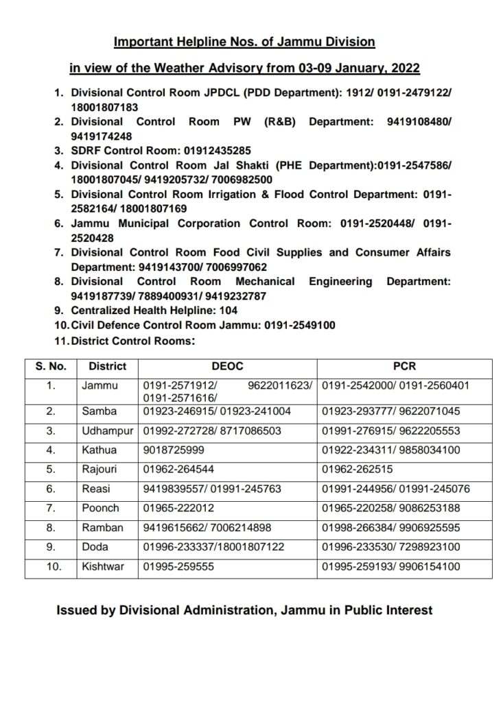 JK News Today Jammu, January 03: Helplines in Jammu division following weather advisory Post navigation Dubai EXPO 2020 India Pavilion showcasing dawn of new era in J&K-Principal Secretary I&C Saffron blooms in J&K’s Rajouri district as cultivation trial bears fruit