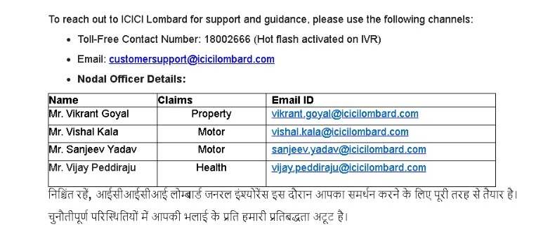 To reach out to ICICI Lombard for support and guidance, please use the following channels: