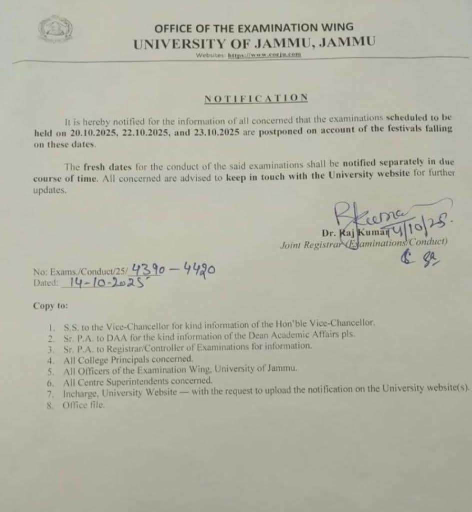 JK News Today Jammu university exams postponed Post navigation Apni Party to field candidates in Nagrota, Budgam seats, says Altaf Bukhari Candidates for assembly J&K are Aga syed mohsin for Budgam from BJP & Divya Rana for Nagrota for BJP