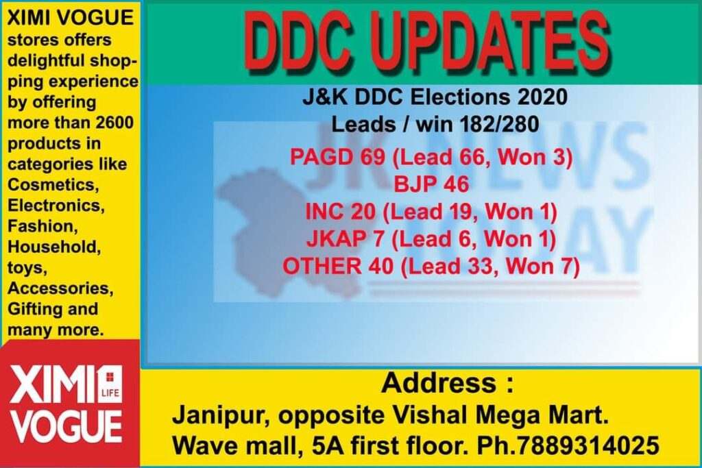 JK News Today Jammu, December 22: Post navigation Gupkar Alliance leading at 63 seats, BJP is at no 2 DDC Elections Ganderbal District Trends