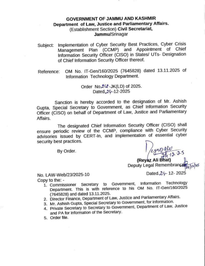 J&K govt appoints Chief Information Security Officer to ensure cyber security