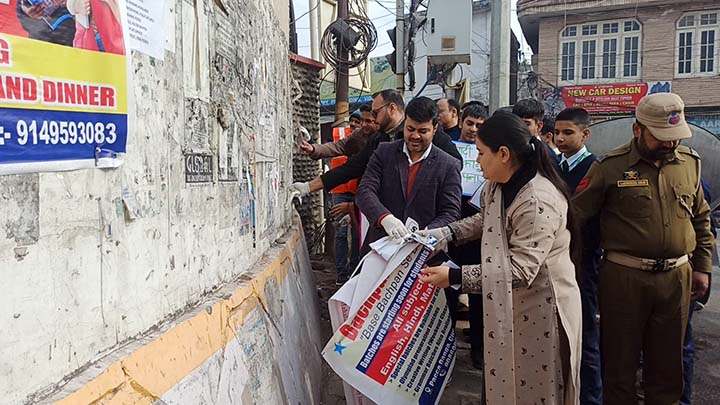 During the drive, posters and unauthorised publicity material pasted on public walls were removed by school students, symbolising active community participation and youth involvement in cleanliness initiatives. The activity was carried out in the presence of Dr. Devansh Yadav, Commissioner, Jammu Municipal Corporation, who appreciated the enthusiasm of the students and highlighted the importance of maintaining clean and defacement-free public spaces.