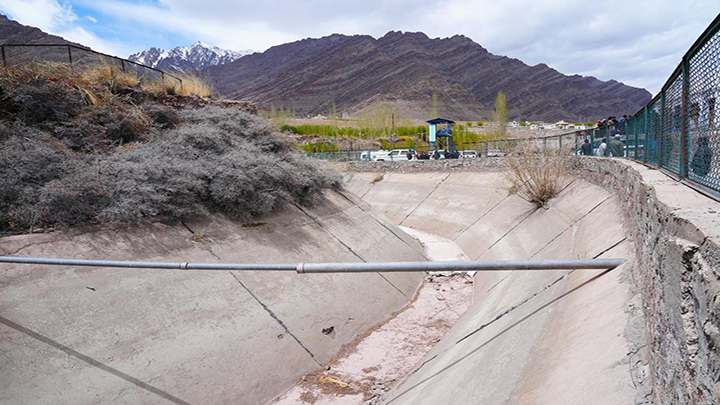 The Igoo-Phey Irrigation Canal, initiated in 1979 and completed in 2005, and spanning approximately 43 km with 30 distributaries, was designed to irrigate nearly 4,500 hectares of land on the left bank of the Indus River. Villages from Igoo to Phey, including Martselang, Changa, Thiksey, Shey, and Chuchot were benefiting from this canal. The canal played a crucial role in enhancing green cover and supporting agricultural livelihoods in the region. However, due to non-maintenance of the canal for many years, villagers are facing acute water shortage.