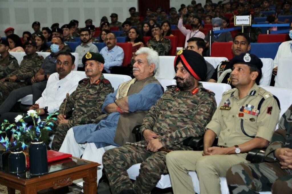 The celebrations in Nagrota commenced with the ceremonial lighting of the lamp by the Hon’ble LG, Shri Manoj Sinha in presence of a huge gathering of all ranks of White Knight Corps. A Short film on the glorious history of White Knight Corps and conduct of Veer Smriti Yatra was screened to the audience. During his address, Lt Gen Manjinder Singh welcomed the Hon’ble LG and other distinguished guests and assured them of the unflinching support by all ranks of White Knight Corps towards the National cause. The Corps Commander also highlighted the major initiatives undertaken by the Indian Army for the Awaam in addition to guarding the active borders. The major initiatives by Indian Army in close coordination with the civil administration include, uplifting educational standards, Skill development, Youth Empowerment, Women Empowerment, encouraging sports activities and infrastructure development in far flung areas by aligning all projects with the existing government schemes for Nation building.