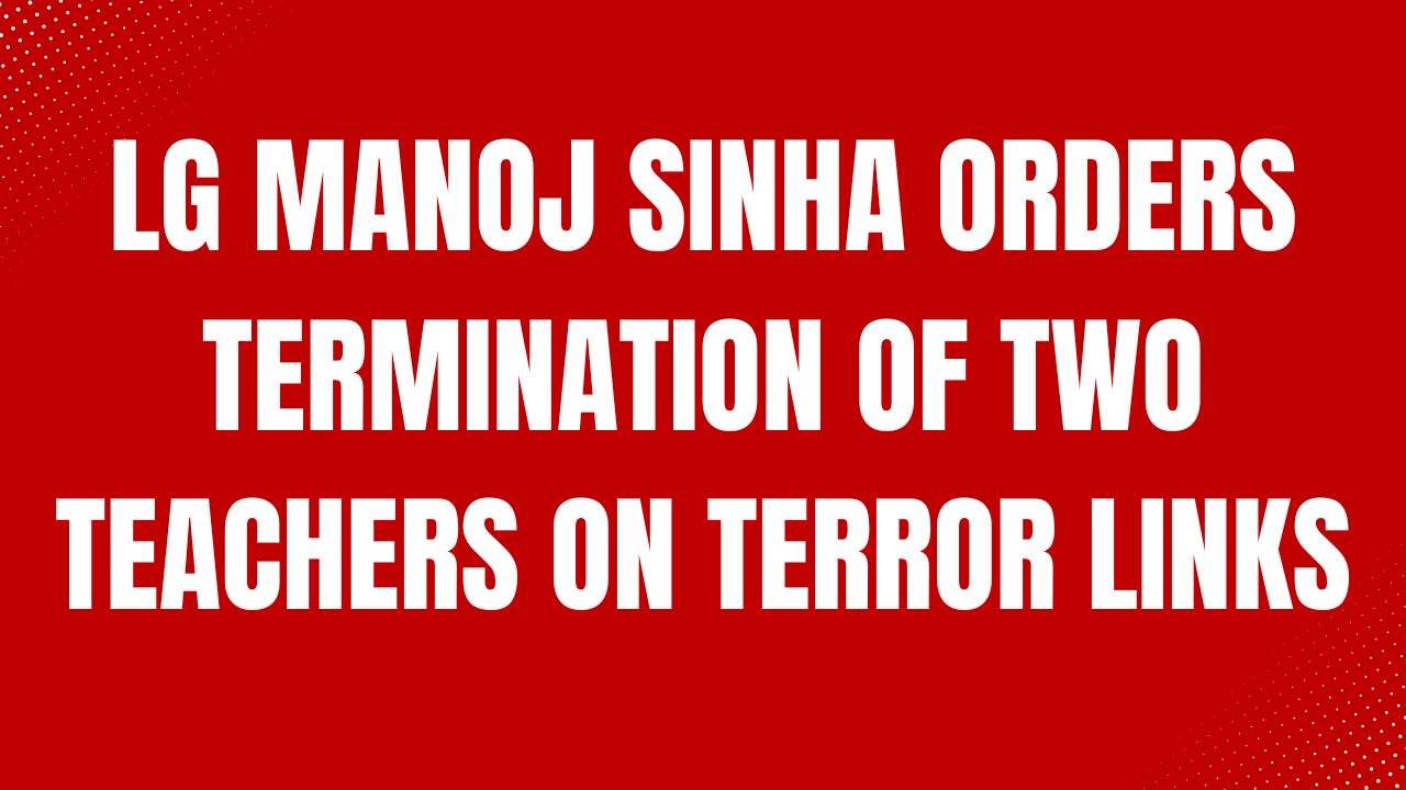 Srinagar, Oct. 30: LG Sinha terminates two Govt employee over terror links in J&K The terminated employees include Ghulam Hussain, a teacher in the Education Department, accused of acting as an Over Ground Worker (OGW) for Lashkar-e-Taiba (LeT), maintaining links with terrorists and facilitating recruitment and funding in Reasi districtMajid Iqbal Dar, a teacher and former Lab Assistant, allegedly engaged in narco-terrorism, radicalization of youth, and terror financing through drug money, with connections to IED plots in Rajouri and continued subversive activities even during detention