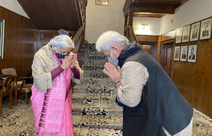 LG Manoj Sinha Welcoming Nirmala Sitharaman Union Minister for Finance, and Corporate Affairs to Raj Bhavan