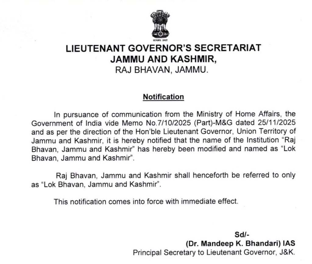 LG Sinha renames Raj Bhavans in J&K as Lok Bhavans