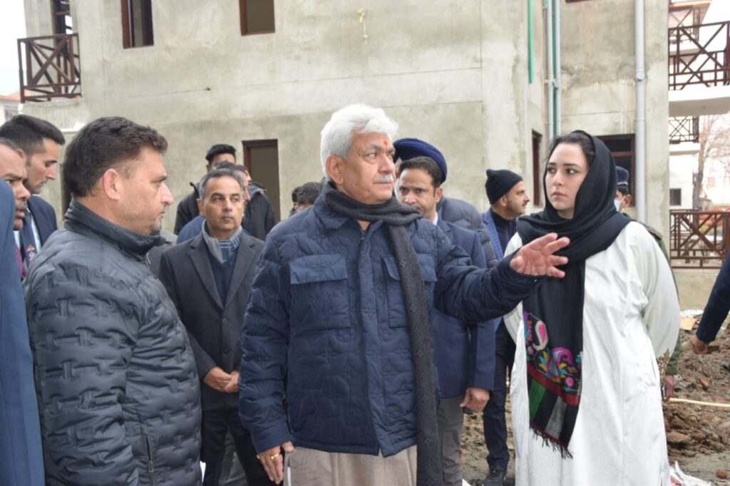 BARAMULLA/ BANDIPORA, DECEMBER 14: Lieutenant Governor Manoj Sinha conducted on-site inspection and reviewed ongoing construction work of the transit accommodations for PM Package employees at Baramulla and Bandipora, today.