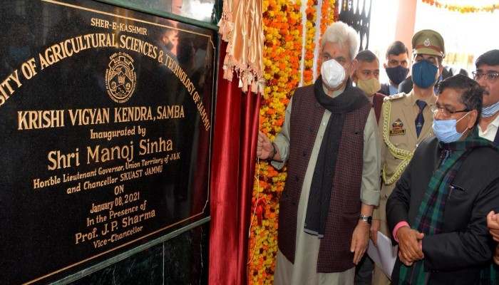 Lieutenant Governor, Manoj Sinha today paid a visit to Samba district and inaugurated Krishi Vigyan Kendra building complex. He felicitated the progressive farmers who were trained by the SKUAST and are earning a sustainable livelihood, besides involving other farmers in agricultural activities.