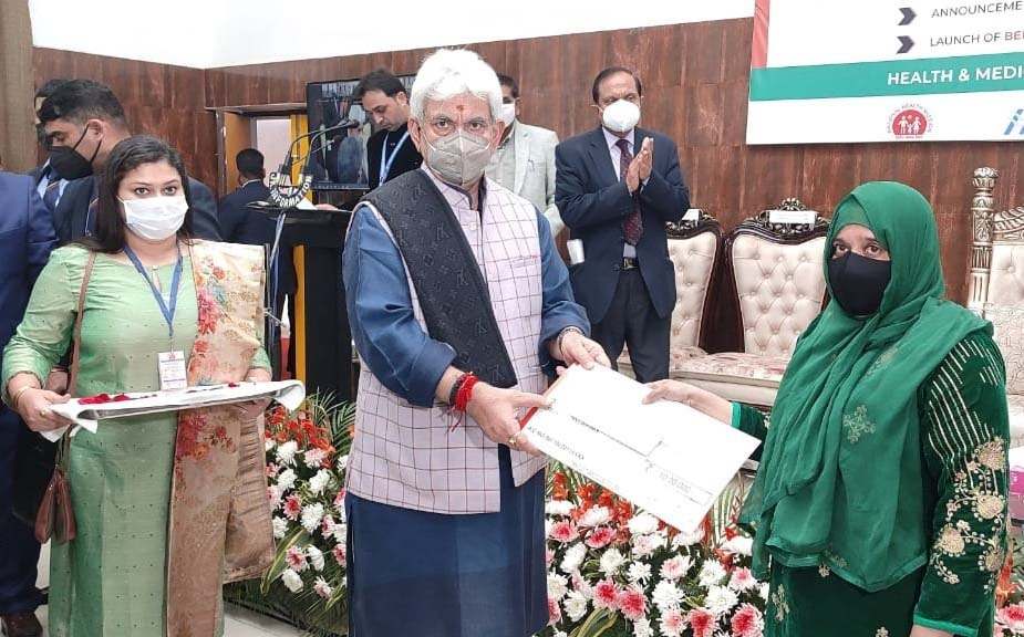 The Lt Governor launched a social security scheme for employees under the National Health Mission and also handed over ex-gratia cheques of Rs 10 lakhs each to the NoKs of the deceased employees of NHM.