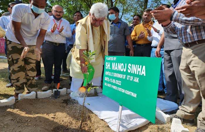 Lieutenant Governor Manoj Sinha on the second day of his visit to Kishtwar, participated in a plantation programme organized by NHPC Dulhasti Power Project.