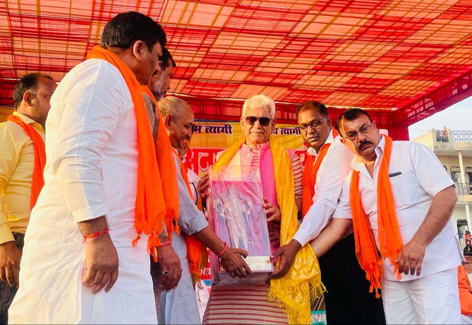 Ghaziabad, April 2: Lieutenant Governor Manoj Sinha unveiled the statue of Maha Vir Chakra recipient Major Asharam Tyagi at Adarsh Nagar, Nandgram, Ghaziabad today.