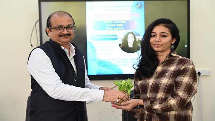 21 November 2025, Jammu: The Department of Journalism and Media Studies, University of Jammu, organised an insightful guest lecture on the topic “The Future of Indian Media: Emerging Trends and Technologies”. Here today the session featured Neha Pushkarna, Former Metro Editor, Hindustan Times, New Delhi, as the resource person.