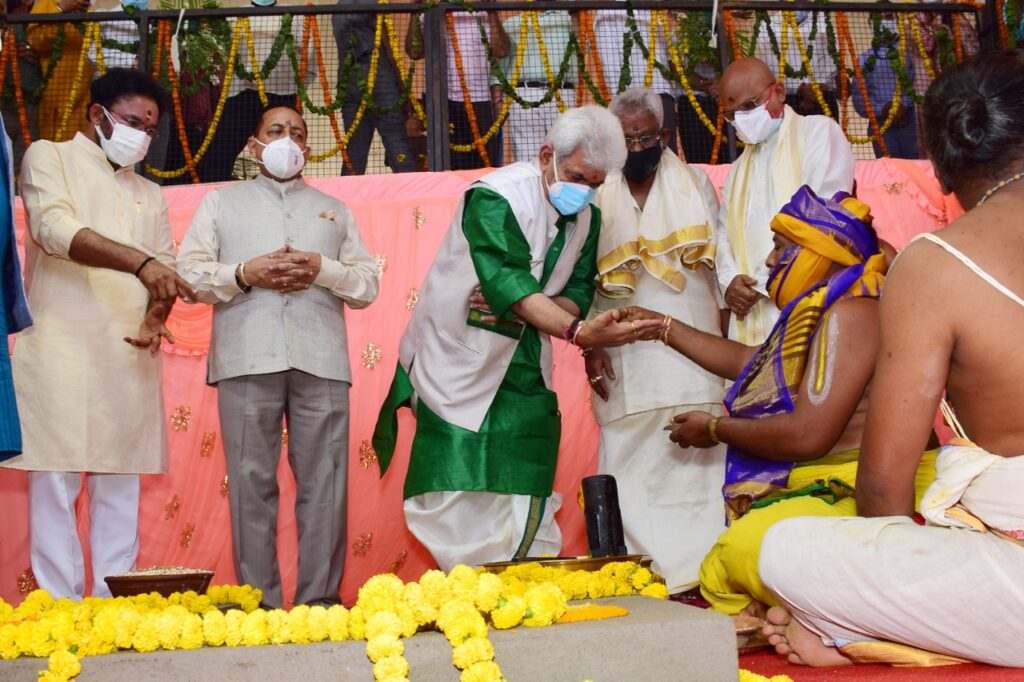 Lieutenant Governor, Manoj Sinha took part in Bhoomi Pujan and unveiled the plaque to mark the laying of foundation stone in presence of Union MoS PMO, Dr Jitendra Singh, Union MoS Home, G Kishan Reddy, Chairman TTD Board, Y V Subba Reddy, V Ram Madhav, Member, National Executive, RSS, and several other dignitaries.