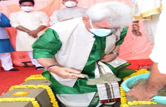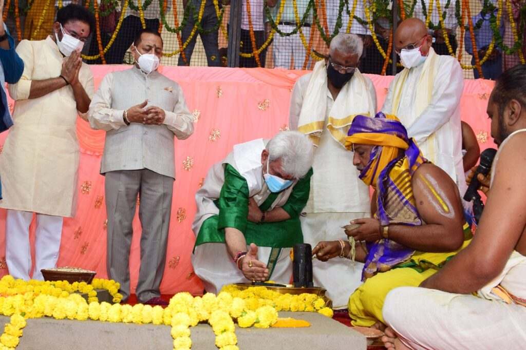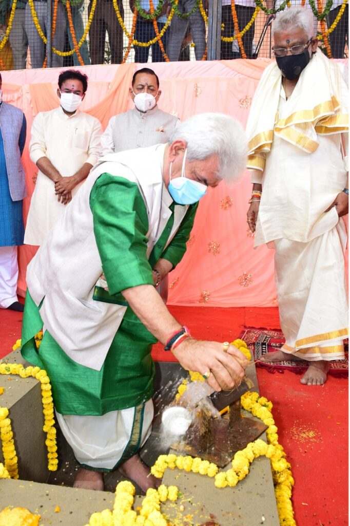 Lieutenant Governor, Manoj Sinha took part in Bhoomi Pujan and unveiled the plaque to mark the laying of foundation stone in presence of Union MoS PMO, Dr Jitendra Singh, Union MoS Home, G Kishan Reddy, Chairman TTD Board, Y V Subba Reddy, V Ram Madhav, Member, National Executive, RSS, and several other dignitaries.