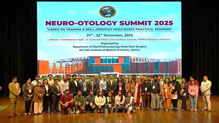Jammu, Nov. 25: AIIMS Jammu organised a two-day National Neuro-Otology Workshop on 21–22 November, bringing together leading experts, faculty members, and delegates from across the country. The programme focused on specialised training in vertigo evaluation, vestibular diagnostics, and advanced otologic surgeries.