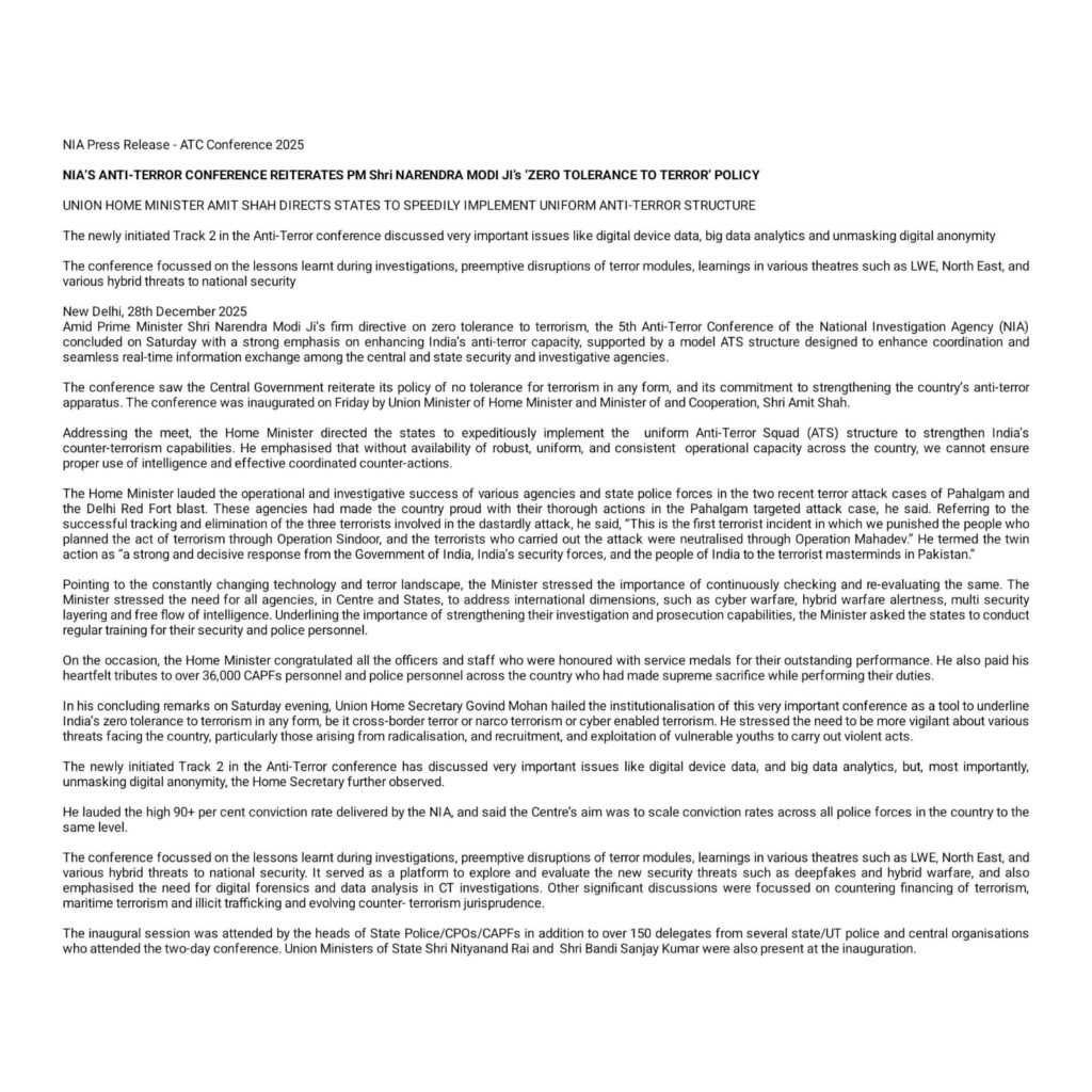 JK News Today NIA’s Anti-Terror Conference Reiterates PM Shri Narendra Modi Ji’s Zero Tolerance to Terror Policy Post navigation Union Home Minister and Minister of Cooperation Amit Shah addresses the Indian Medical Association’s National Conference IMA Natcon 2025 in Ahmedabad today