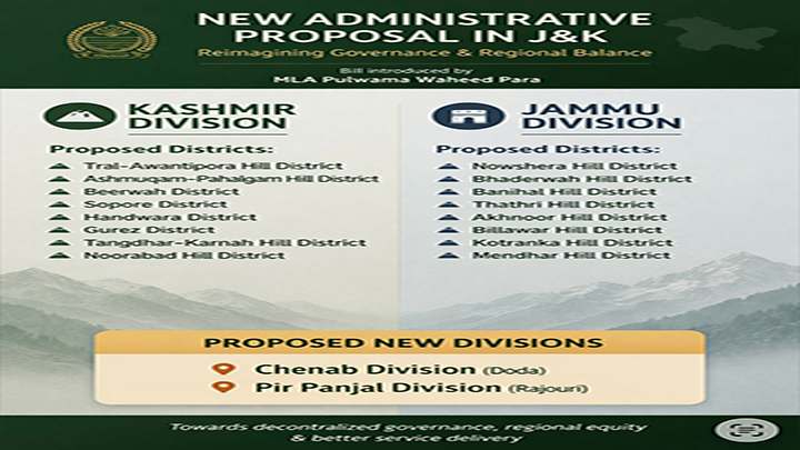 According to the draft bill, the government will be empowered to assign districts to Jammu, Kashmir, Chenab, or Pir Panjal divisions through official notifications, while ensuring geographical continuity, administrative convenience, socio-cultural cohesion, and balanced regional development.