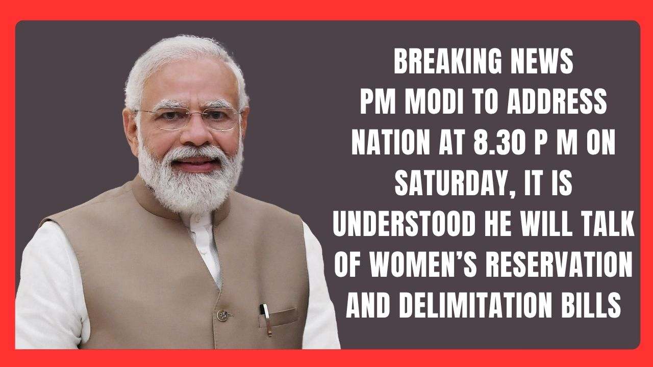 PM Modi to address nation at 8.30 p m on Saturday, it is understood he will talk of women’s reservation and delimitation bills
