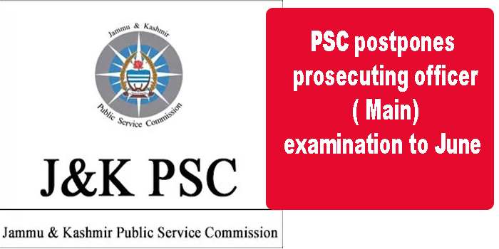 Srinagar, June 08 The jammu and Kashmir Punlic Service Commission on Thursday announced postponement of JK prosecuting officer ( Main) examination from June 9 to June 17.