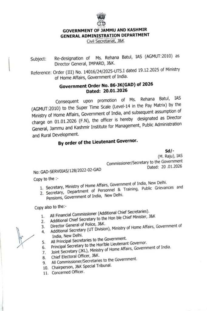 JK News Today Rehana Batool appointed as Director IMPA, J&K Post navigation DC Ramban reviews progress of NH-44 four-laning project, security arrangements from Nashri to Banihal CS finalises the roadmap, timelines and manpower framework for Census 2027