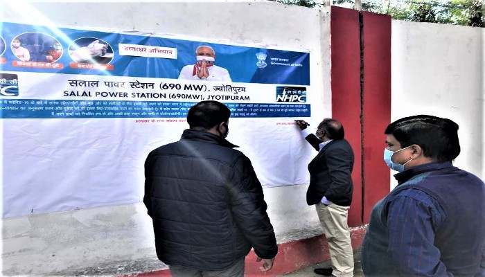 Salal Power Station, today launched a “signature campaign” against “Covid-19” at the administrative building complex at Jyotipuram, Head of Power station and General manager (Incharge), N.Ram inaugurated the “Signature Campaign” by carrying forward the “Jan-Andolan” against the “Covid-19”. In this campaign today, a total of 92 people signed and pledged to keep face masks, maintaining two yards distance, and wash / sanitize hands with soap and water or sanitizer.