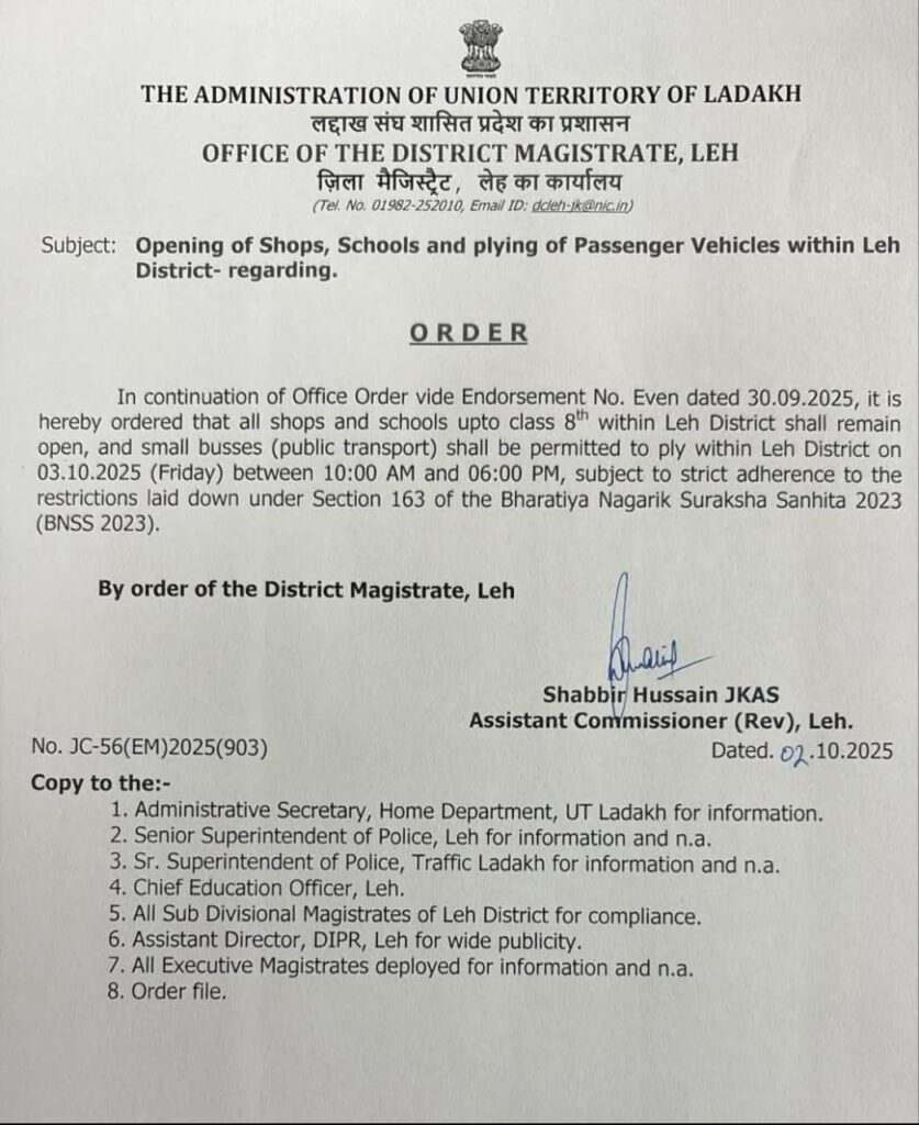 Ladakh UT administration orders magisterial probe into September 24 incidents