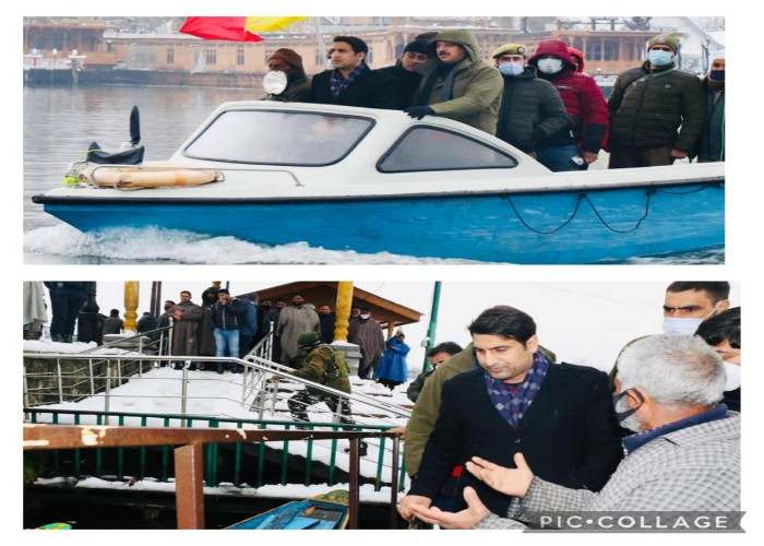 The Deputy Commissioner, who was accompanied by, Additional Deputy Commissioner, Srinagar, Dr Syed Haneef Balkhi visited Dal Lake areas via motor boat to inspect the houseboats/Shikaras which got sunk due to snowfall during the intervening night of 22nd February.