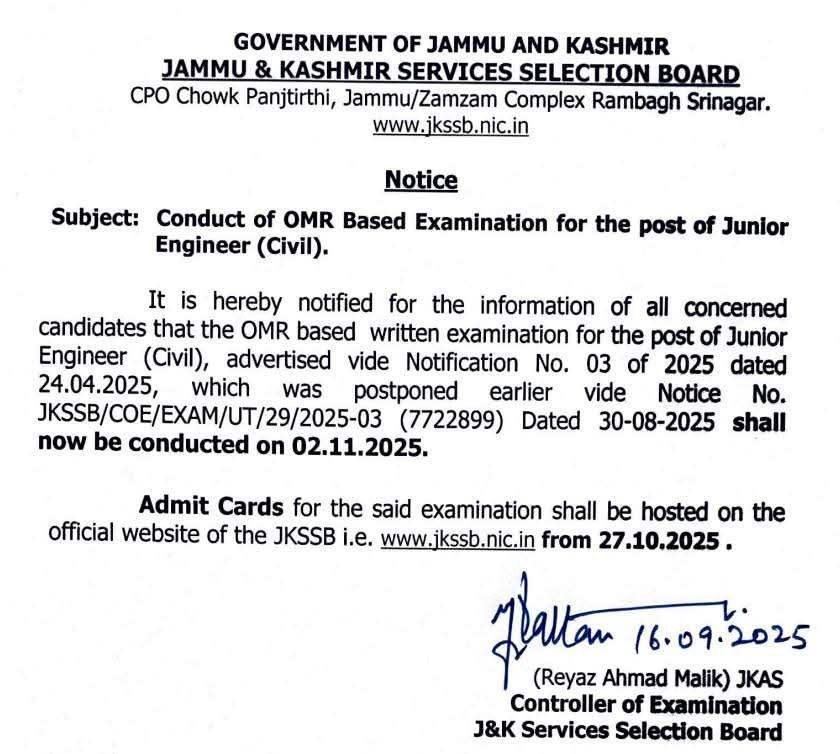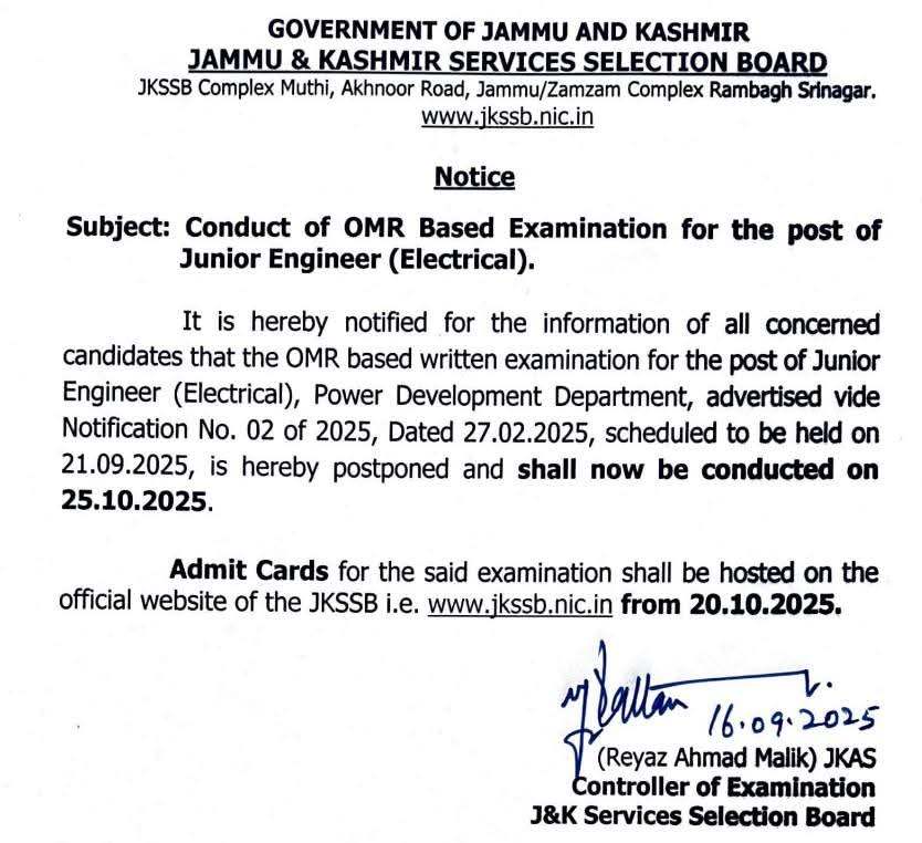 JK News Today SSB Announces Fresh Exam Dates for JE Electrical & Civil Posts Post navigation Central University of Jammu Hosts Induction Program for Physics Freshers Over 2200 fruit-laden trucks evacuated via Mughal Road during past 24 hours: Div Com Kashmir