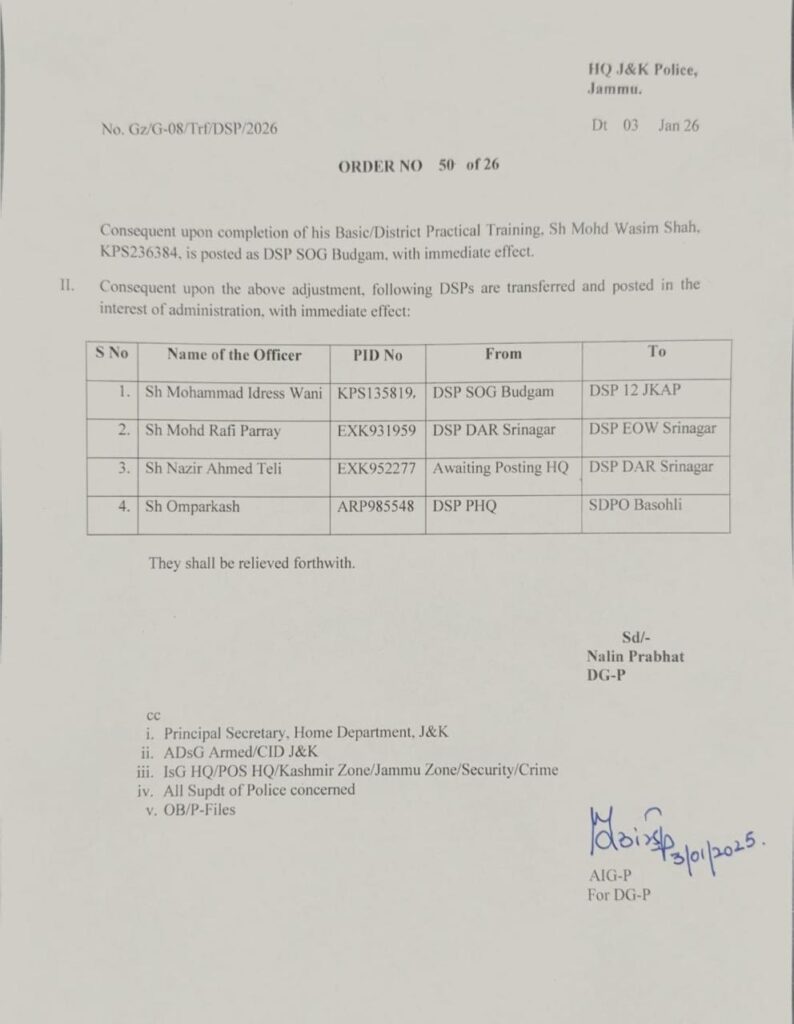 JK News Today Three Dy SPs transferred Post navigation LG Sinha unveils poster of “The Last Dose” Choudhary Ramzan raises serious concern over drug abuse in J&K at MHA parliamentary Consultative committee