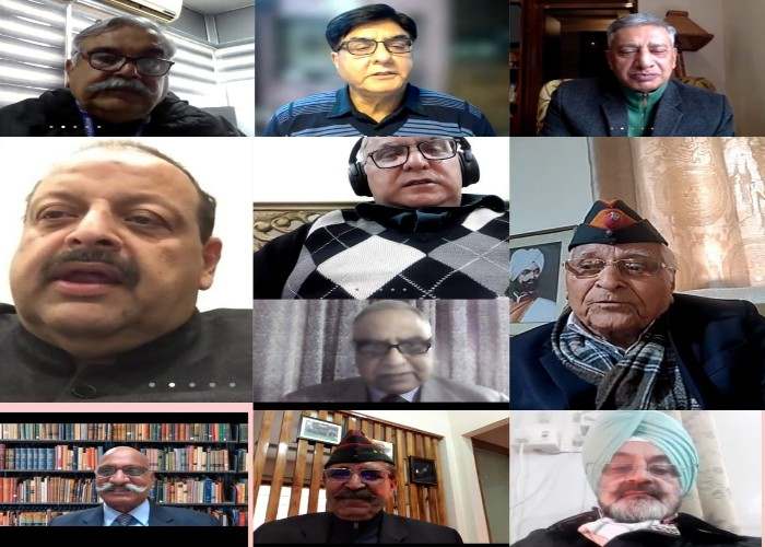 Former Chief Secretary and serving Chairman J&K PSC B R Sharma, former Director General of Punjab Police, P.S Gill, former Directors General of J&K Police Kuldeep Khoda, Dr. Ashok Bhan, K. Rajendra Kumar, Dr S. P Vaid, former veterans Maj Gen Goverdhan Singh Jamwal , Lt General R. K Sharma and Brig Anil Gupta participated in over 90 minute virtual conference anchored and hosted by former legislator Devender Singh Rana.