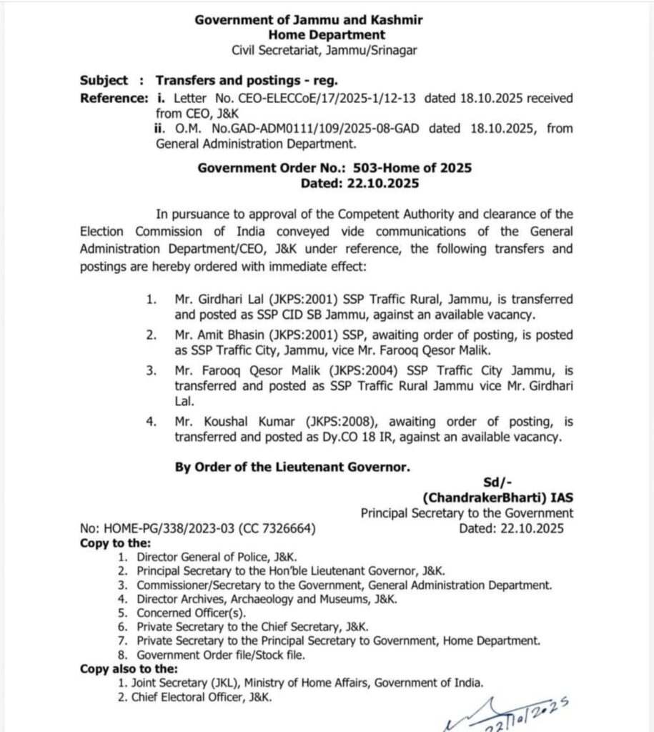 JK News Today Traffic SSP Jammu transferred Post navigation Syed Mohammad Altaf Bukhari extends condolences on the demise of party worker’s husband Legislative Assembly pays glowing tributes to former Governor, Legislators